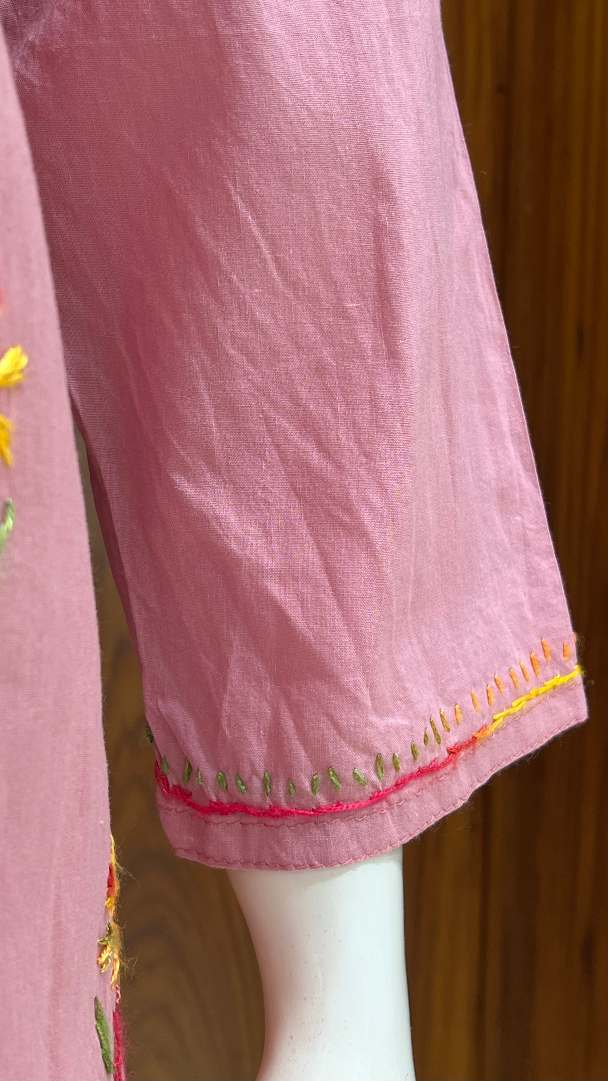 Bring elegance to your everyday wear with this blush pink kurta, adorned with exquisite multicolor floral embroidery on the yoke and scattered motifs throughout. The soft tone and delicate detailing make this kurta a perfect blend of charm and comfort, ideal for casual outings or festive daytime looks.