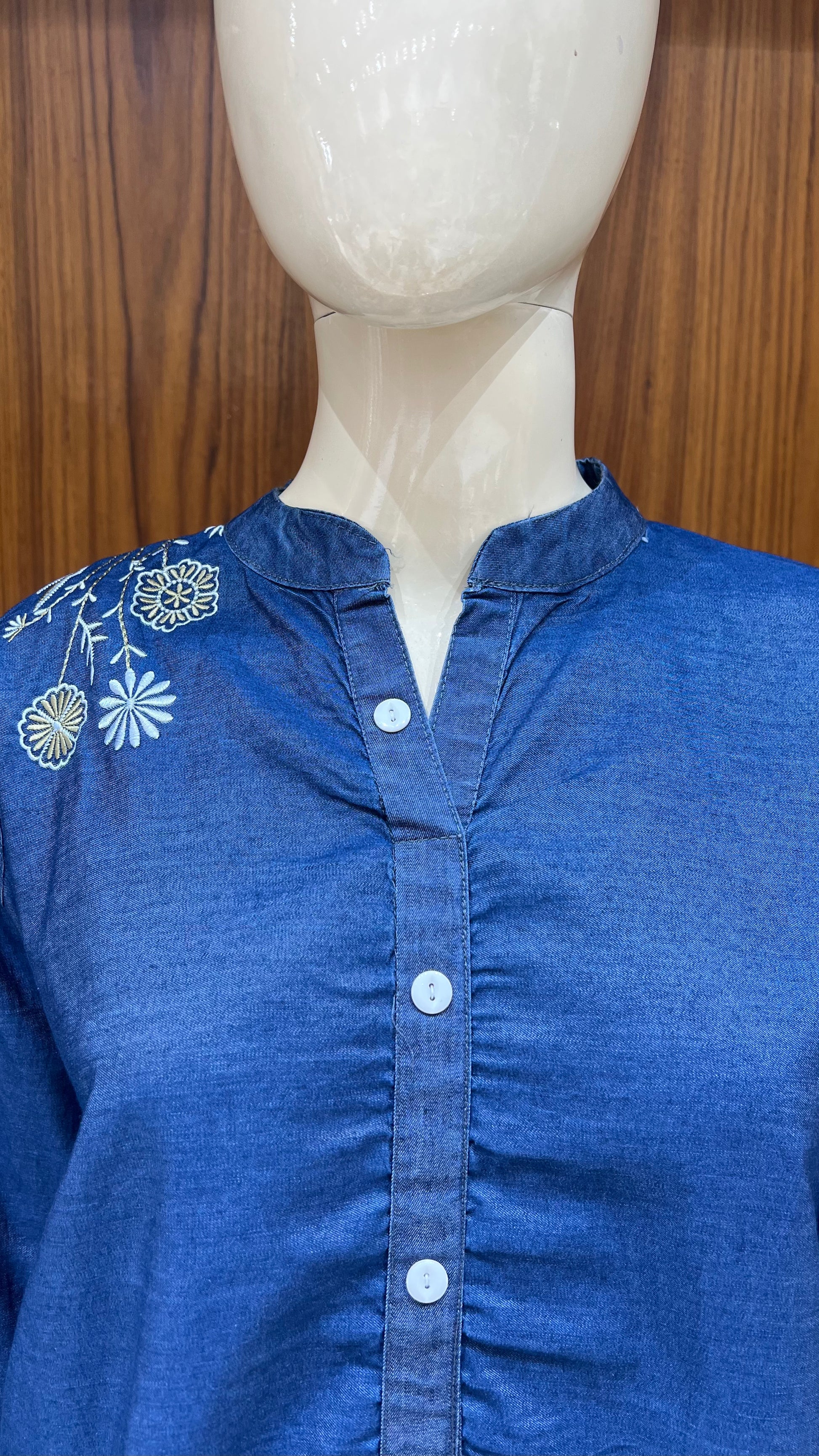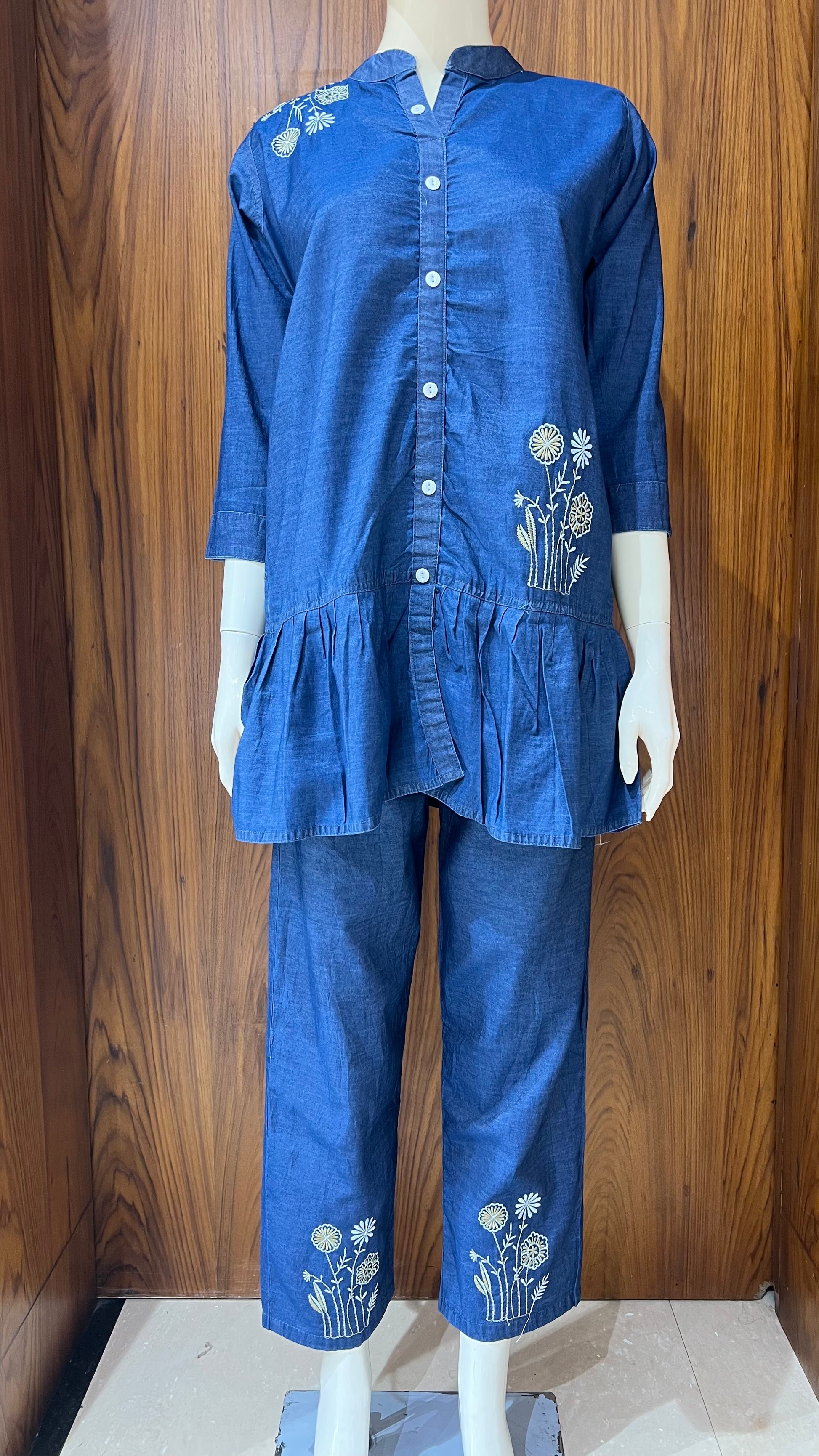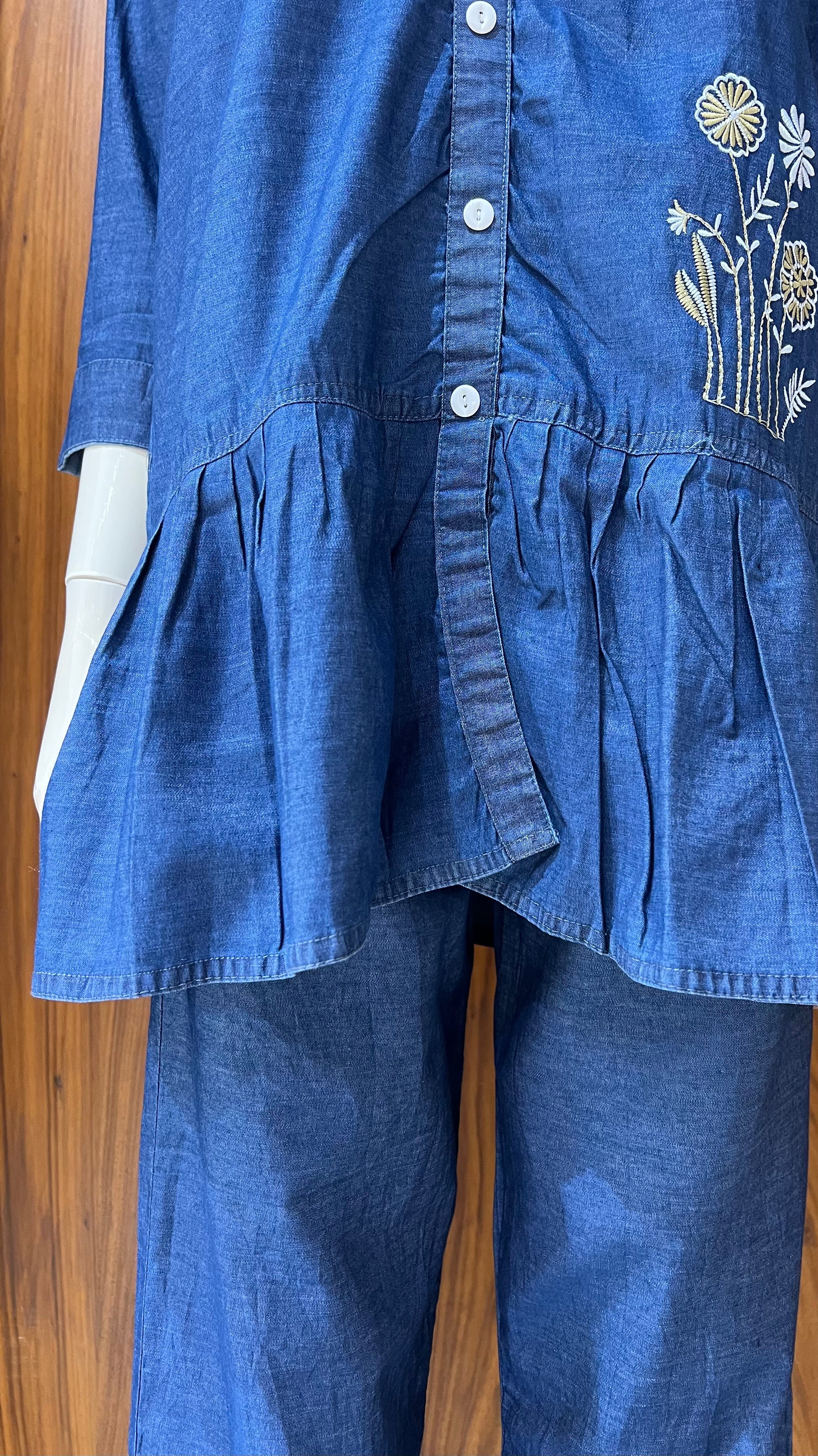 "Denim Dandelion" - Embroidered Denim Peplum Co-ord Set