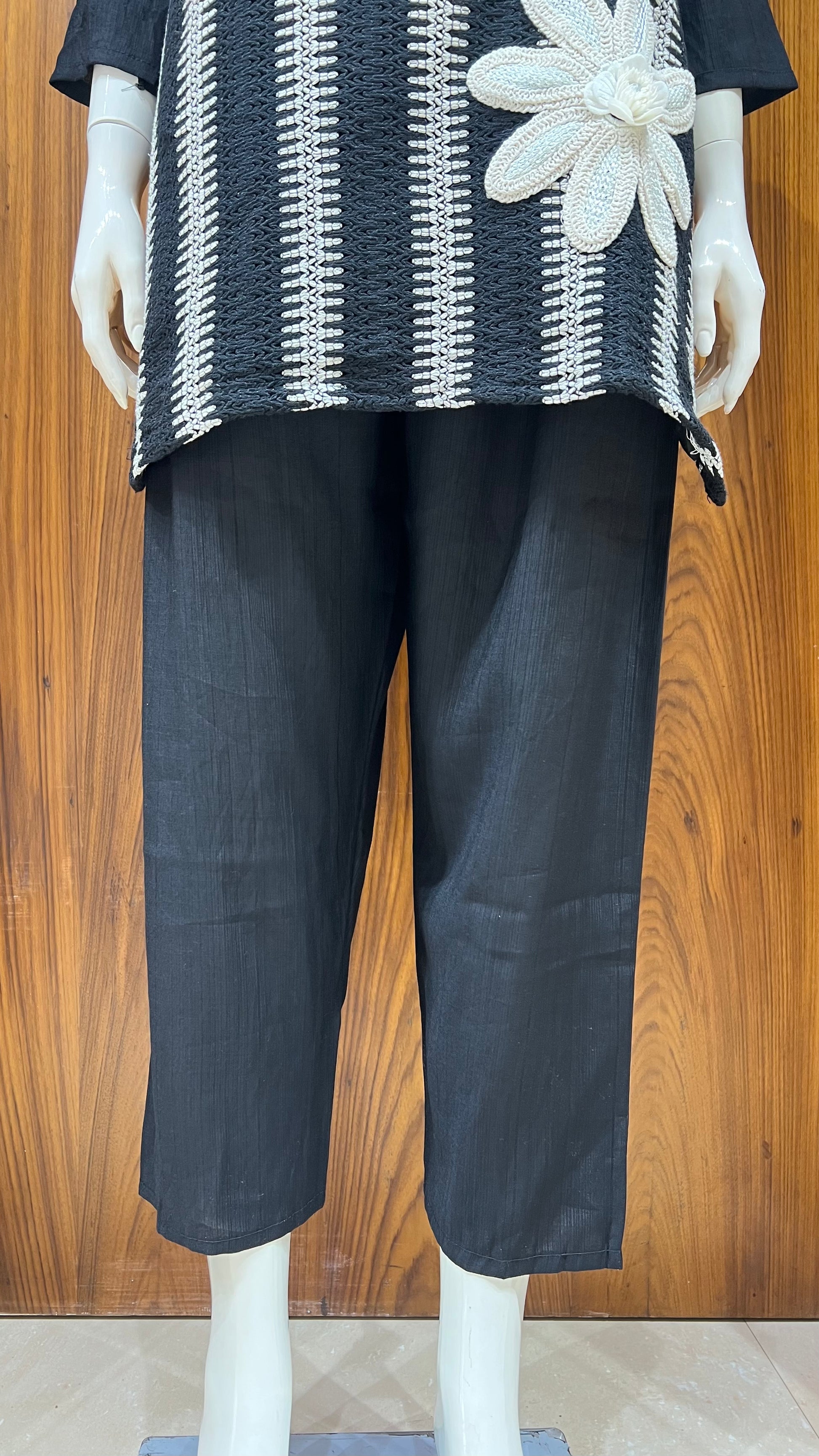 "Monochrome Bloom" - 3D Floral Applique Co-ord Set