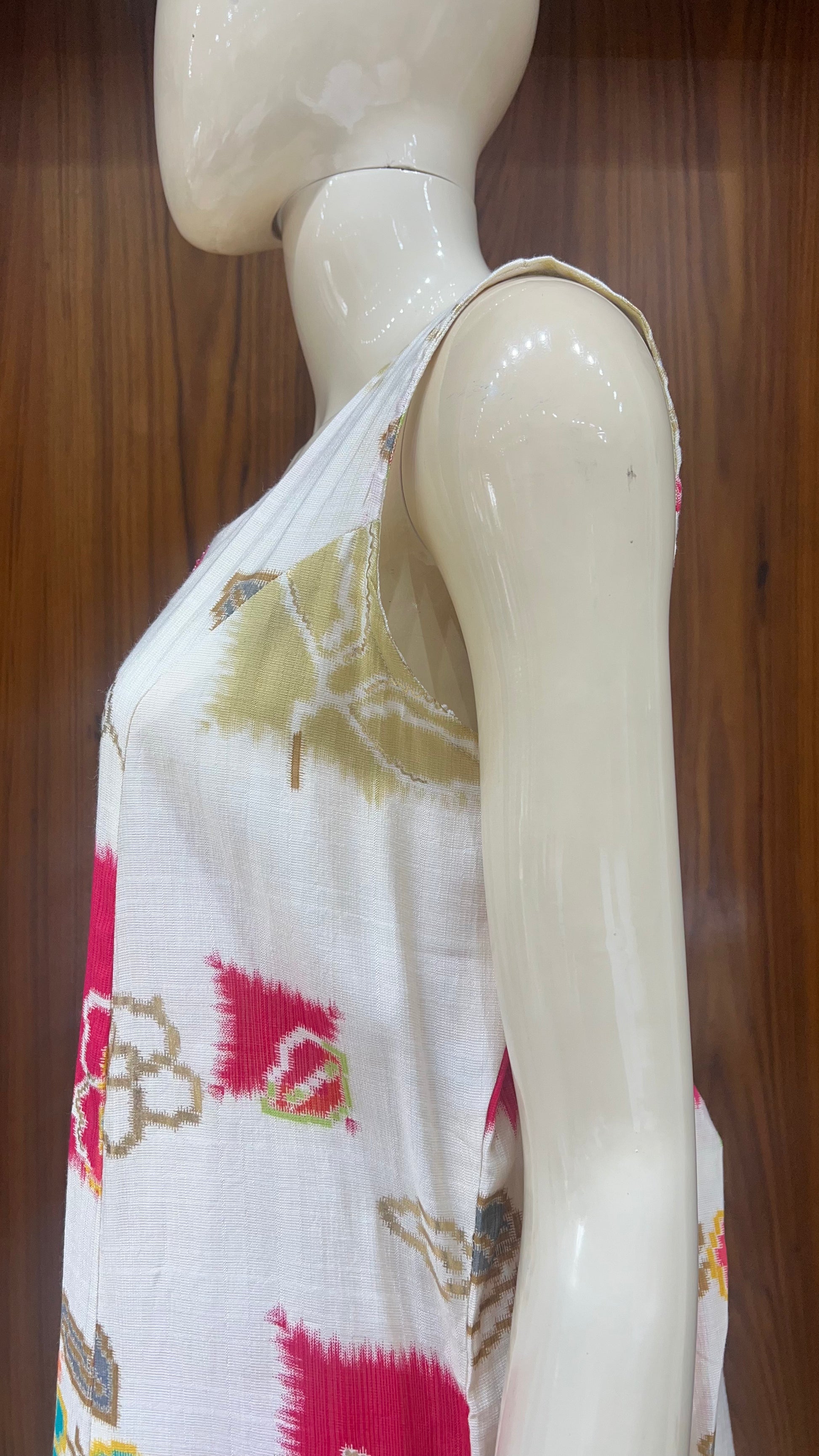 Step into a vibrant celebration of color and tradition with our "Rangoli Hues" Palazzo Set. This stunning two-piece ensemble is a joyful medley of traditional Indian crafts, featuring a print inspired by classic Bandhani and highlighted with dazzling mirror work. The off-white base acts as a perfect canvas for the explosion of festive colors, creating a look that is both energetic and deeply rooted in culture.