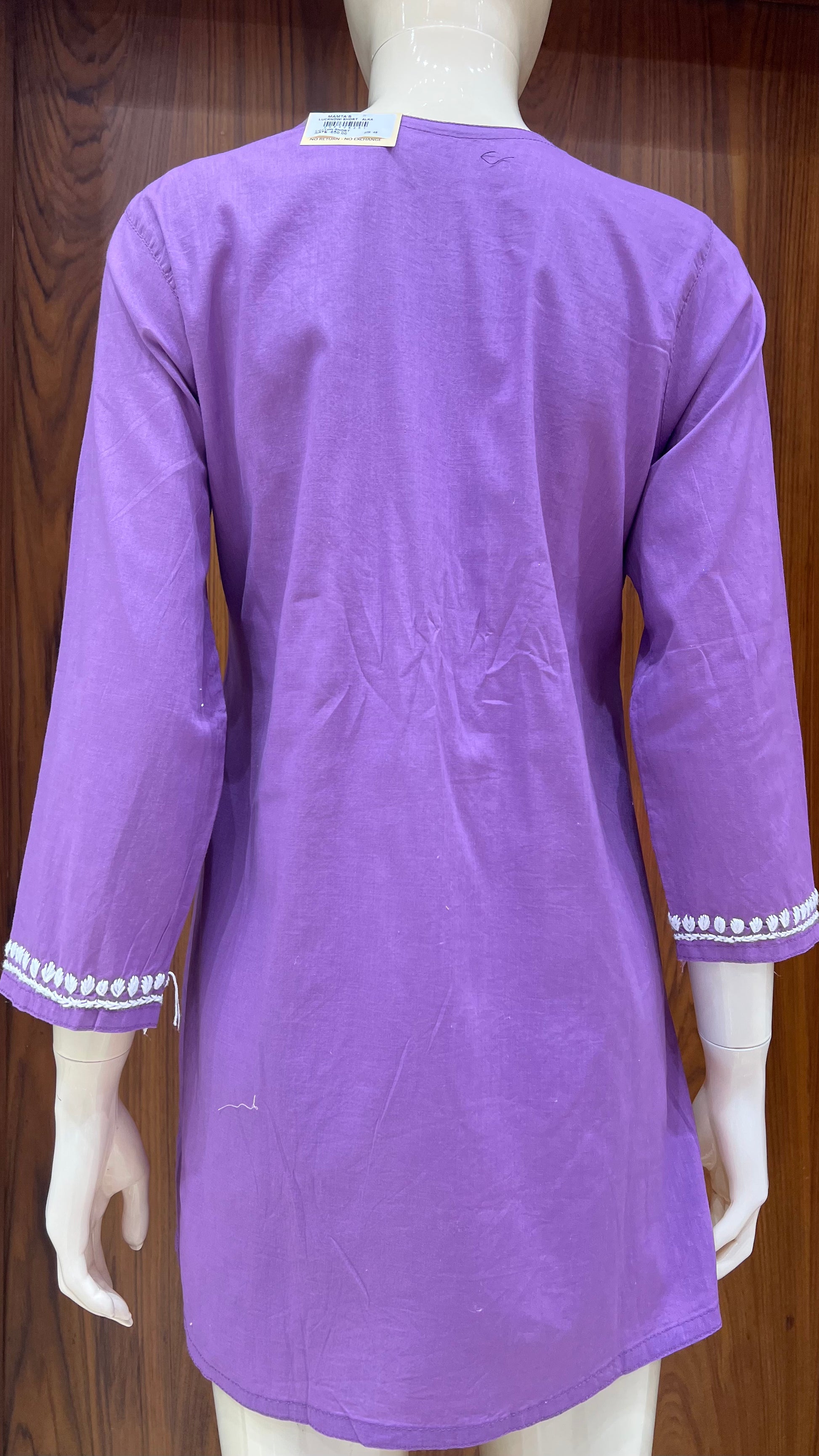 Royal Purple Floral Embroidered Straight Kurti with 3/4th Sleeves