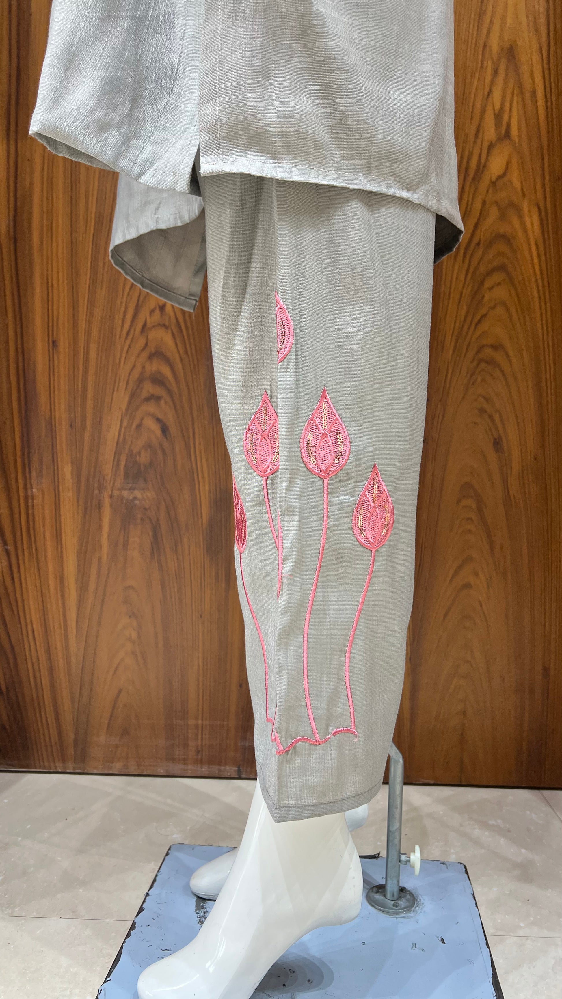"Serene Lotus" - Grey & Pink Embroidered Co-ord Set